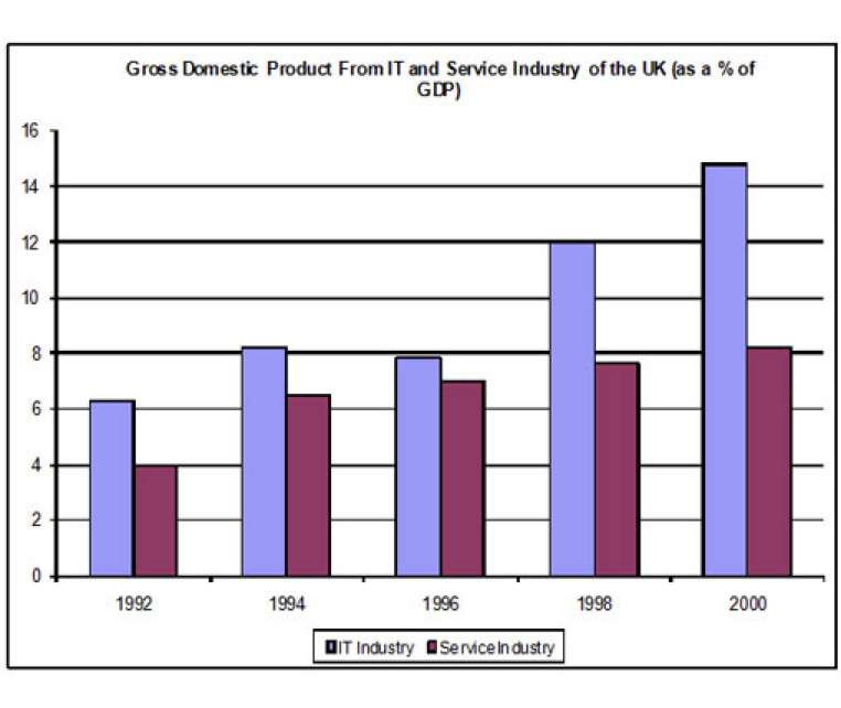 The chart shows components of GDP in the UK from 1992 to 2000.