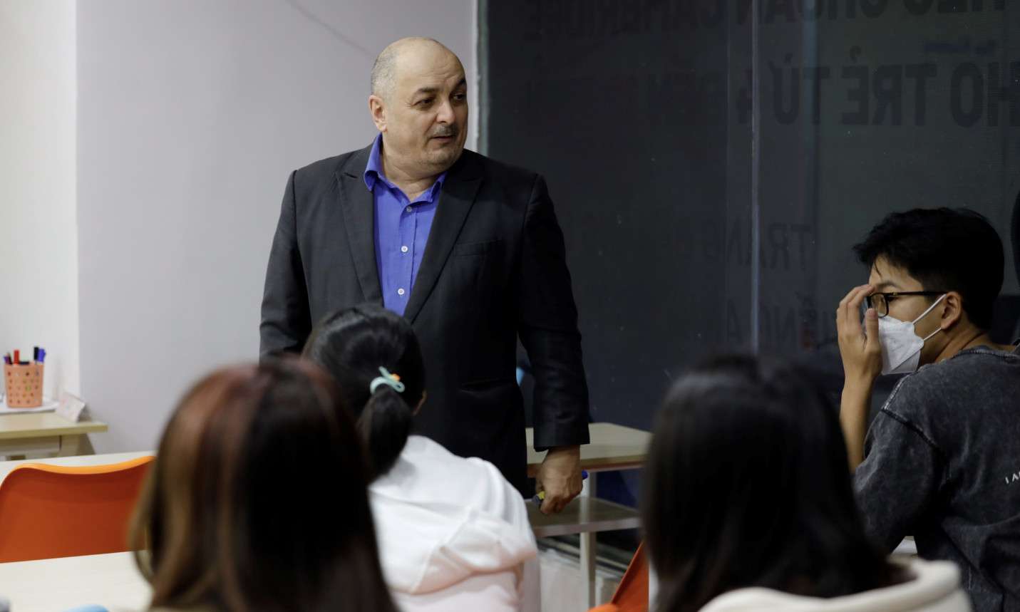 (Thầy Robert – cựu chuyên gia khảo thí IELTS – giảng kỹ năng Speaking 9.0 trong lớp luyện thi IELTS tại Smartcom English)