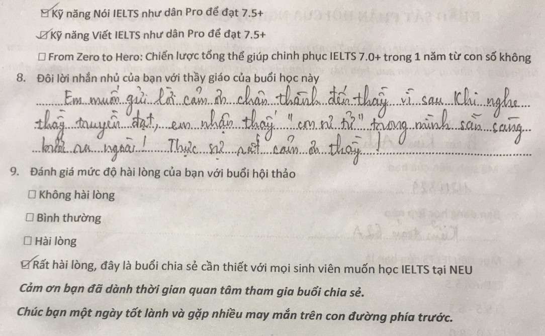 Những câu chuyện tình huống như vậy đã có sức truyền cảm hứng mạnh mẽ, thức tỉnh tiềm năng và khát vọng cháy bỏng trong các em cho chặng đường chinh phục IELTS đỉnh cao trước mắt. Vì ai cũng biết nếu đạt IELTS 8.0 thì đó là một bằng chứng không thể chối cãi về năng lực tiếng Anh vượt trội của các em.