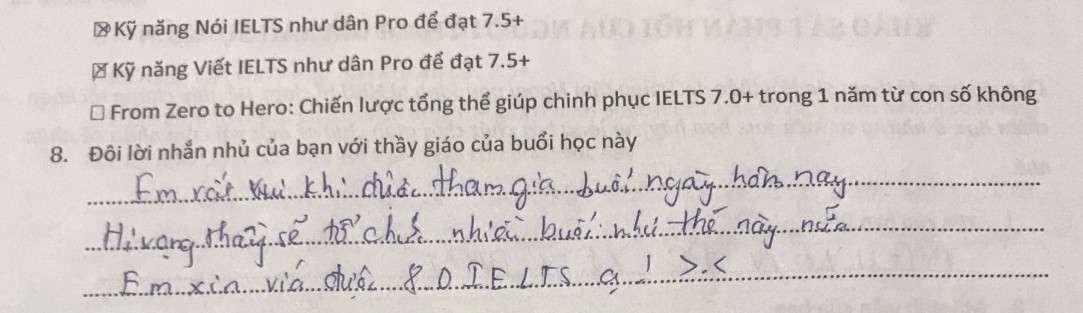 Vì đơn giản là họ biết họ chỉ cần chinh phục thành công những dạng bài viết, bài nói đã được các thầy “lập trình” để đạt thang điểm 8.0 thông qua các template (công thức mẫu) của bài luyện kỹ năng Viết và Nói mỗi ngày, thì chắc chắn họ sẽ chiến thắng trong mọi bài thi Nói và Viết IELTS.