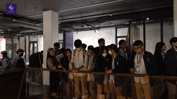 (Các em học sinh chia thành từng nhóm để tìm hiểu về nội dung được trưng bày tại Trung Tâm Giao Lưu Văn Hóa Phố Cổ – 50 Đào Duy Từ)