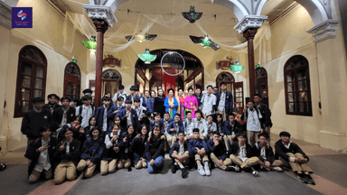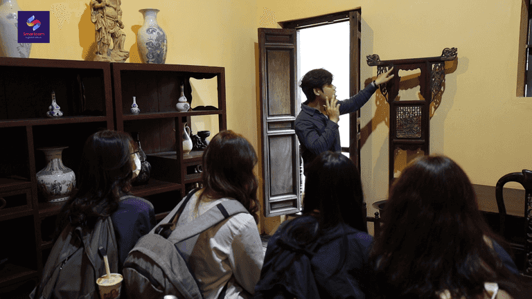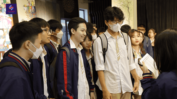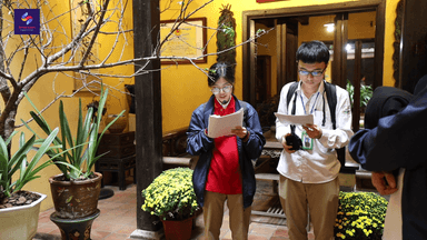 (Các em học sinh trường THPT Mỹ Đình trực tiếp tham gia thuyết trình về Nhà Cổ Số 87 Mã Mây bằng Tiếng Anh)