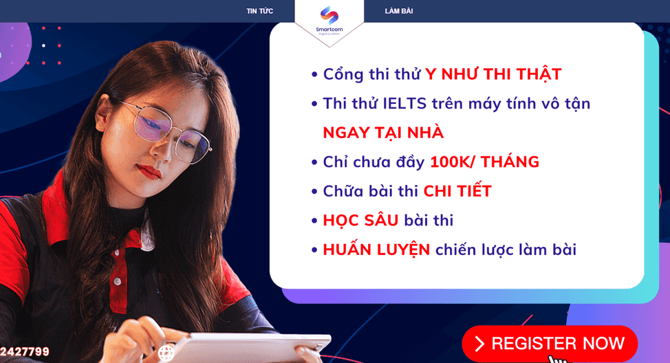 Ảnh: Cổng thi thử & học IELTS trực tuyến của Smartcom English