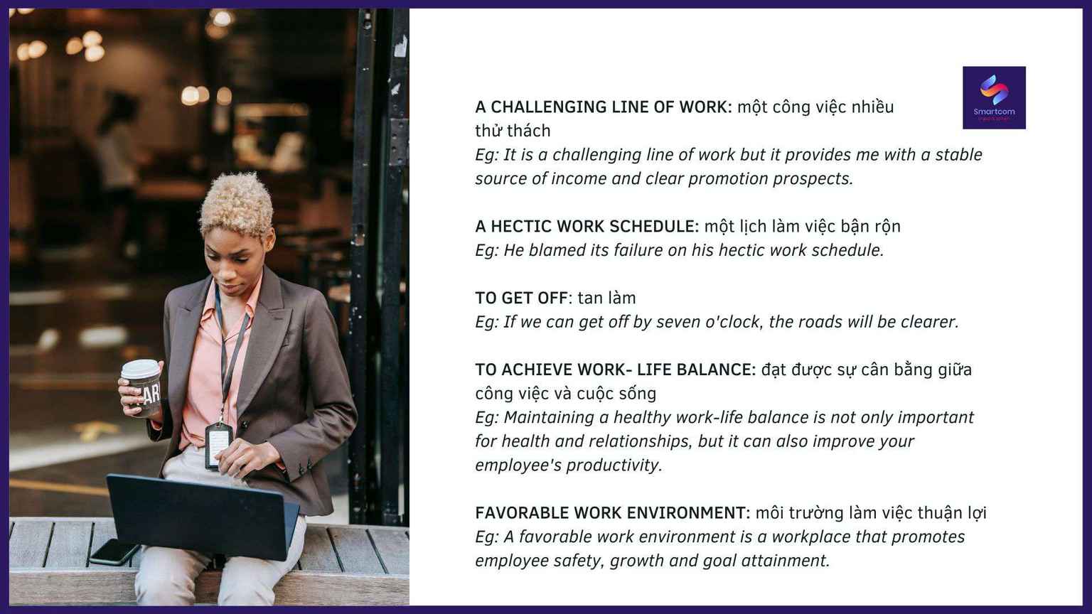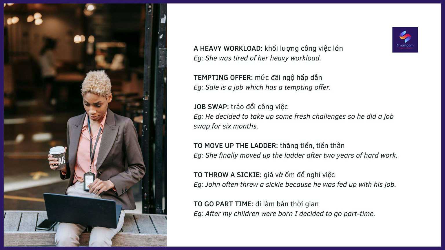 Chủ đề “Work and Study” là chủ đề quá quen thuộc và luôn xuất hiện trong kỳ thi IELTS, vậy làm sao để gây ấn tượng và ăn điểm trong phần này, hãy cùng Smartcom English học ngay các từ vựng và cách diễn đạt dưới đây nhé!