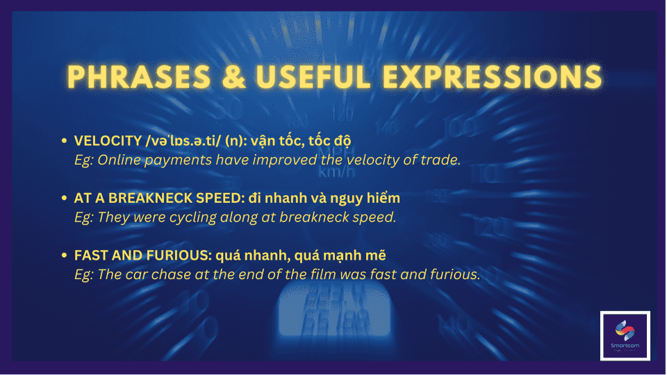 Dưới đây là một số từ vựng về “tốc độ” để các bạn sử dụng giúp tăng sự sắc sảo trong giao tiếp và thi IELTS.